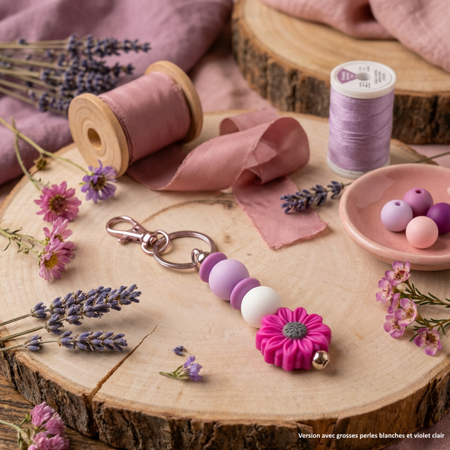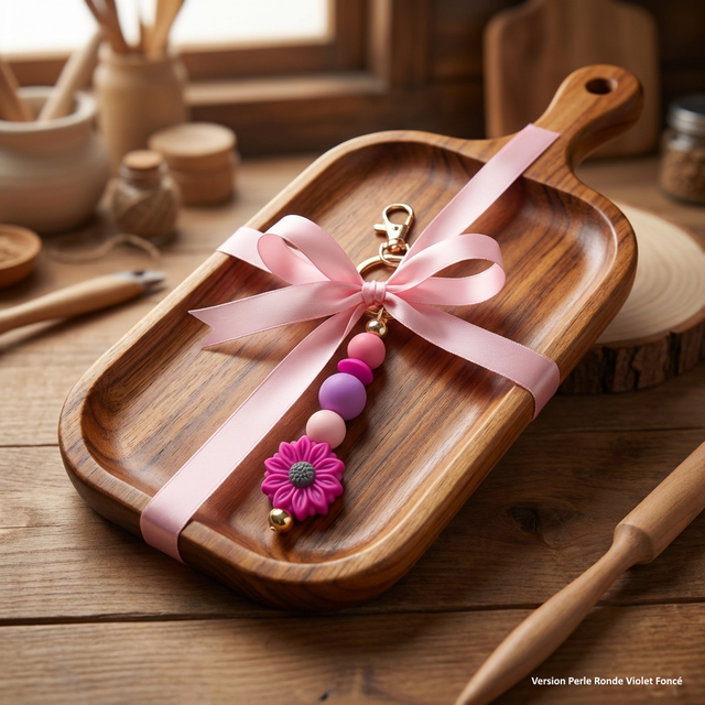 Ajoutez une touche de douceur et d’élégance à votre quotidien avec ce porte-clés en silicone délicatement décoré d’une fleur rose. À la fois pratique et léger il est idéal pour accompagner vos clés, votre sac à main ou même une trousse.