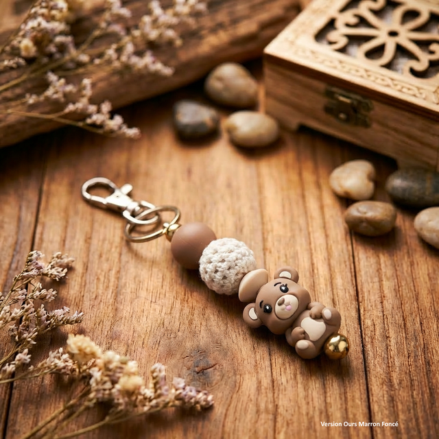 Craquez pour ce porte-clés en silicone au design attendrissant, décoré d’un adorable ourson marron aux tons chaleureux et naturels. Un accessoire à la fois pratique, solide et plein de tendresse, idéal pour accompagner vos clés ou personnaliser un sac.