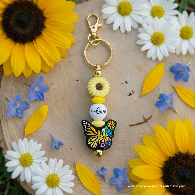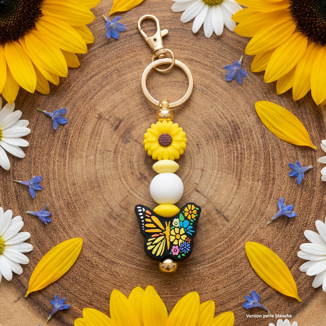 Ajoutez une touche de lumière et de douceur à votre quotidien avec ce porte-clés délicat et chaleureux. Composé de perles aux teintes solaires de jaune doux, il est sublimé par une fleur lumineuse, symbole de tendresse, de joie simple et de connexion à la nature.